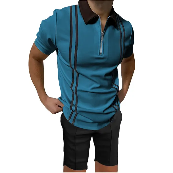 Stylish Summer Tracksuit, StripedTracksuit, Mens Summer Tracksuit, Polo T-shirts and Shorts, Summer Coords Set