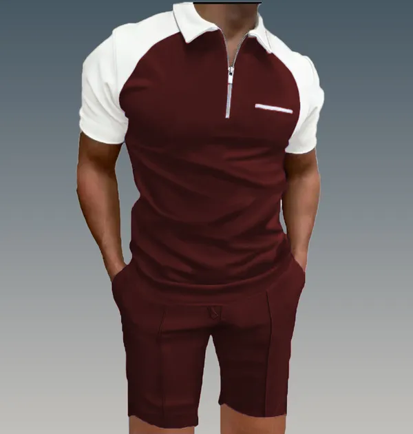 Maroon Mens Zipper Polo Outdoor Casual Summer Tracksuit