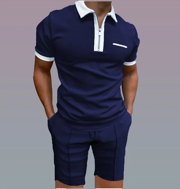 Navy Blue Mens Zipper Polo Outdoor Casual Summer Tracksuit