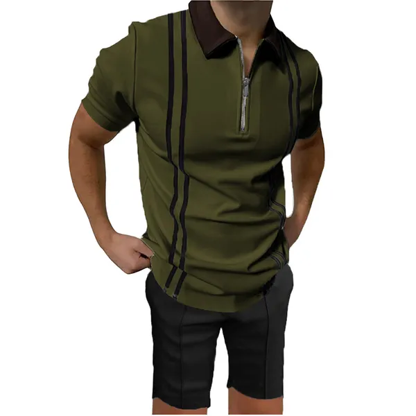 Olive Mens Zipper Polo Outdoor Casual Summer Tracksuit