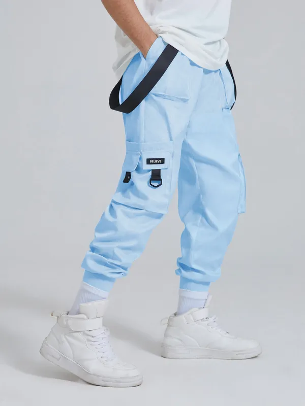 Sky Blue Mens Accessorized Tech Wear Pants