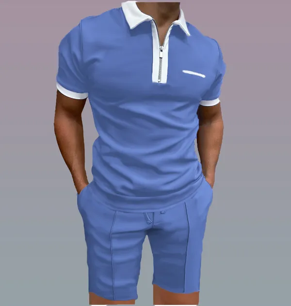 Sky Blue Mens Zipper Polo Outdoor Casual Summer Tracksuit
