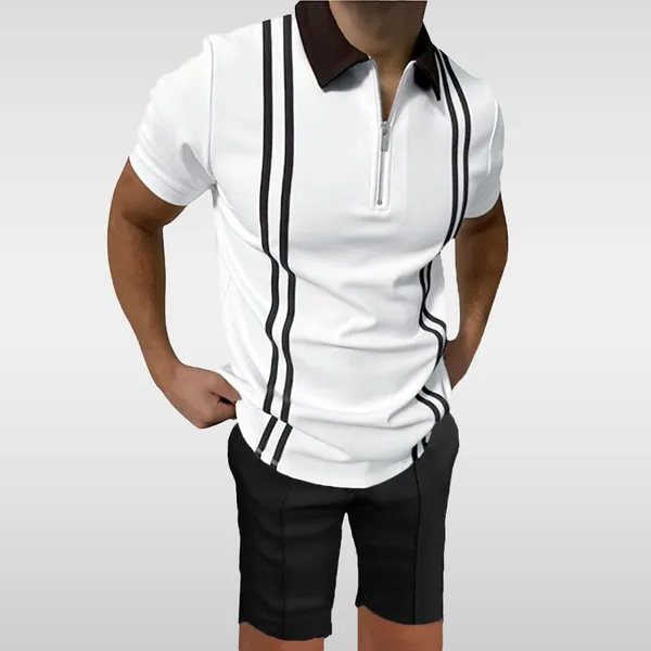 White Mens Zipper Polo Outdoor Casual Summer Tracksuit